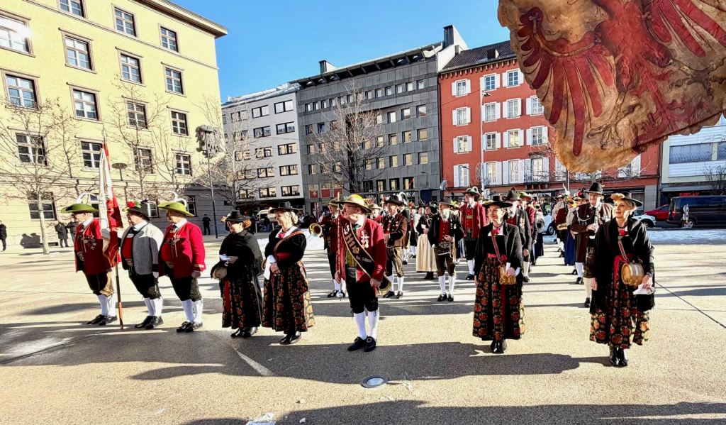 Die Marketenderinnen, unser Fähnrich Martin und zwei Schlagzeuger der Bürgermeistermusik haben mit einer Auswahl an Musikanten des Blasmusikverbandes Zillertal, beim Festakt des 100 Jahre-Jubiläums des Blasmusikverbandes Tirol teilgenommen. „Musik verbindet!!!“