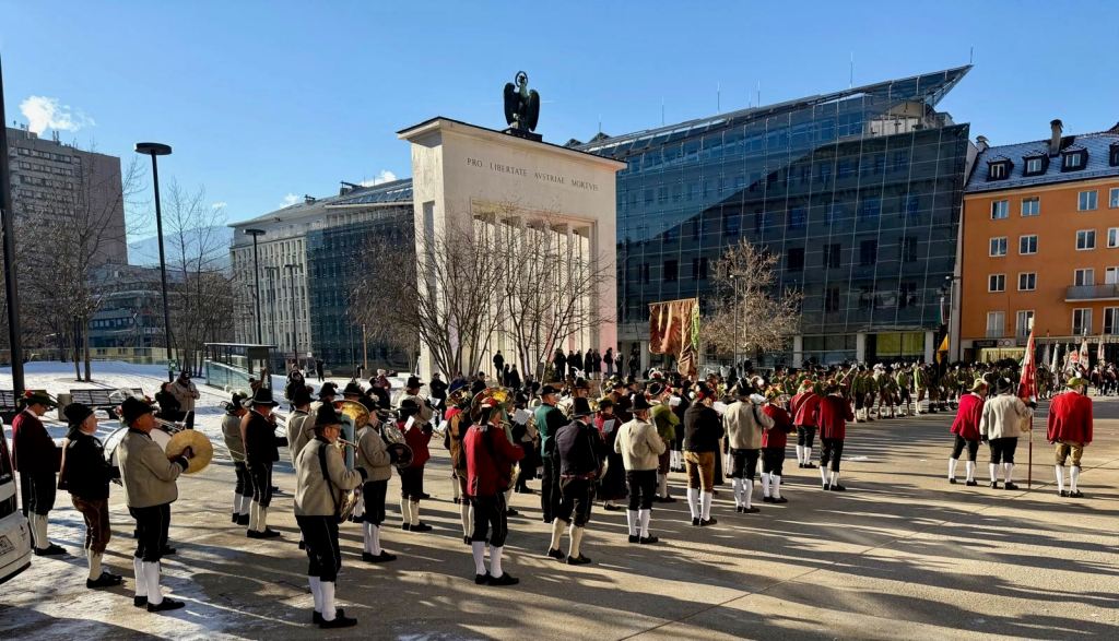 Am Freitag den 09.05.2025 durften wir auf Anfrage des Blasmusikverbandes Tirol beim Festakt zum Gedenkjahr 80 Jahre ende des II. Weltkrieges, 70 Jahre Staatsvertrag und 30 Jahre Österreich in der Europäischen Union, teilnehmen.