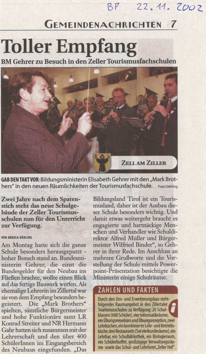 22.11.2002 Tourismusfachschule Empfang